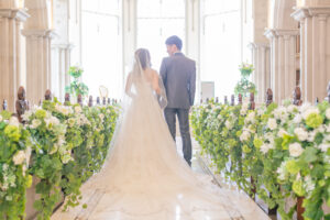 本物の式場チャペルを使って撮影を行うことで、ただの記念撮影ではなく、まるで結婚式のような一日を演出することができます。ステンドグラスから差し込むやわらかな光や、バージンロードを歩く姿、祭壇に立つシーンなど、おふたりにとっても、ご家族にとっても心に残る時間となるのではないでしょうか。