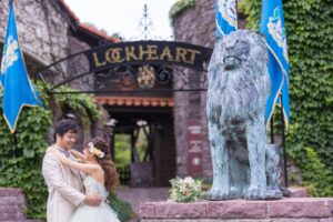 衣装そのものだけでなく、小物使いにもこだわることで、写真にストーリー性を加えることができます。たとえば、ティアラやレースのベール、アンティーク調のブーケなどは、ロックハート城の雰囲気にぴったりです。撮影テーマに合わせてアイテムを選ぶことで、写真に一体感が生まれ、より印象的な仕上がりになります。