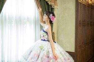 フリルやチュールをふんだんに使ったドレスを選べば、動きのあるショットにも華やかさが加わり、撮影のバリエーションが広がります。