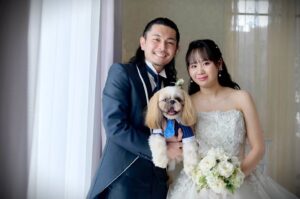 ペットと一緒に過ごす特別な瞬間を、フォトウェディングという形で残したいと考えるカップルにとって、洋装スタジオでの撮影は安心して選べる選択肢のひとつです。天候の心配がなく、ヘアメイクや衣装の準備もスムーズに行える環境が整っているため、当日はリラックスして撮影に臨めます。