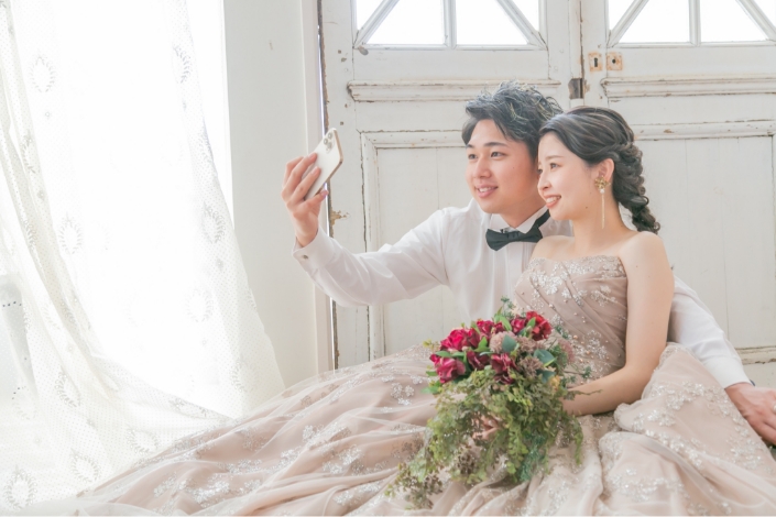 自然の中でロマンティックに彩るロケーション撮影と、柔らかな光がそっと降りそそぐアトリエスタジオ撮影。ドレスも2着楽しめるので、装いごとに“おふたりらしさ”が華やかに広がります。 いろんな“かわいい私”を楽しめちゃう。ときめきが止まらない1日をご用意しました。