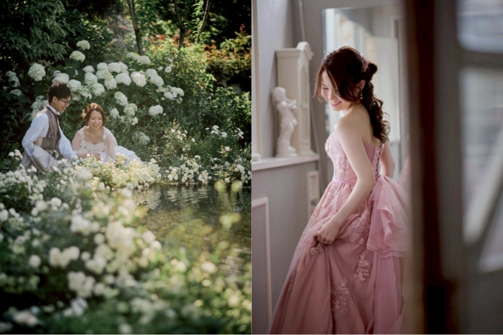 しっとりとした雰囲気や花々に囲まれた華やかな雰囲気、ドレスがふわりと広がる上質なショットなど幅広く撮影できるのもロケだからこそ。花嫁の憧れを叶える、圧倒的に美しいロケーションフォトをご提案します。
