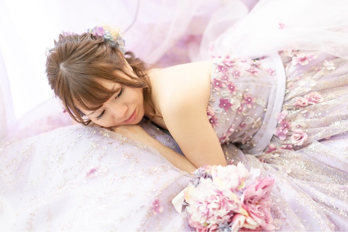 アトリエのような柔らかな光に包まれながら、憧れのドレス姿を美しく残すソロスタジオプラン。“いまの私を大切に残したい”という想いに寄り添います。心ゆくまでドレスを纏う、特別な時間をお届けします。