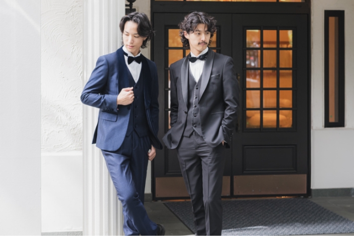 洗練されたデザイン、絶妙なフィット感。 クラシックなブラック、モダンなネイビー、ラグジュアリーなグレー。 一人ひとりの体型に美しくフィットする、上質なタキシードをラインナップ。